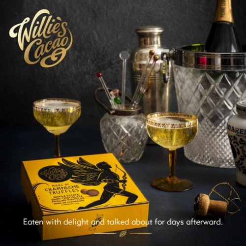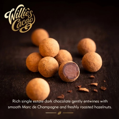 WILLIE'S CACAO DARK CHOCOLATE MARC DE CHAMPAGNE TRUFFLES - 16 PIECE GIFT BOX.